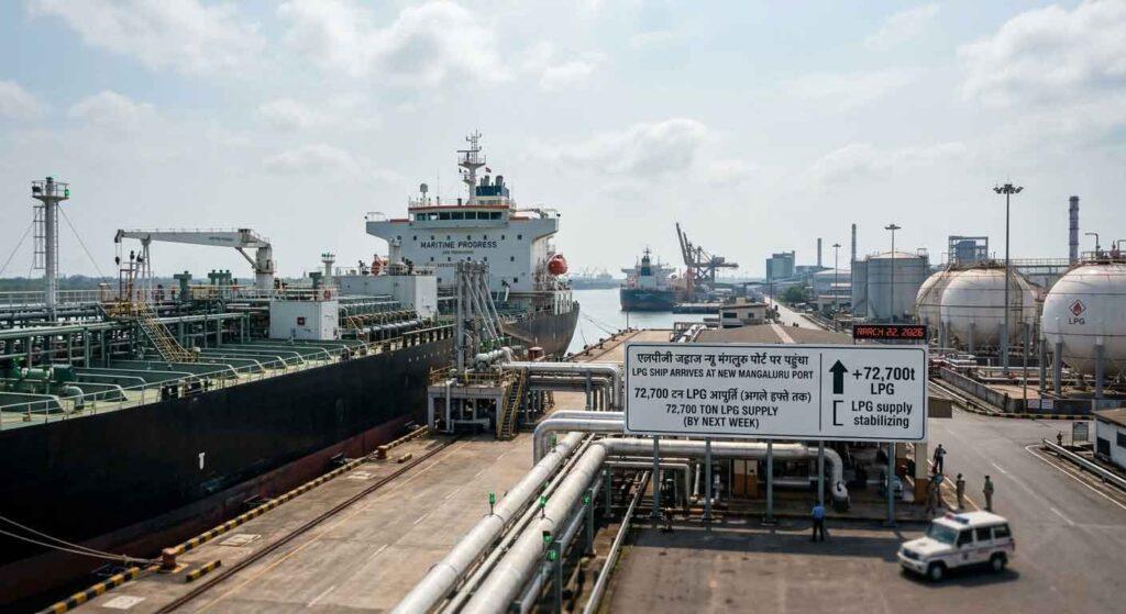 भारत में गैस की किल्लत का समाधान नजदीक आ गया है, क्योंकि एक जहाज हजारों टन LPG लेकर आया है. यह जहाज कर्नाटक के न्यू मंगलुरु पोर्ट पर पहुंच गया है, जहां अगले हफ्ते तक 72,700 टन LPG पहुंचने वाले हैं. यह गैस देश के विभिन्न हिस्सों तक पहुंचाने के लिए काम आएगी.