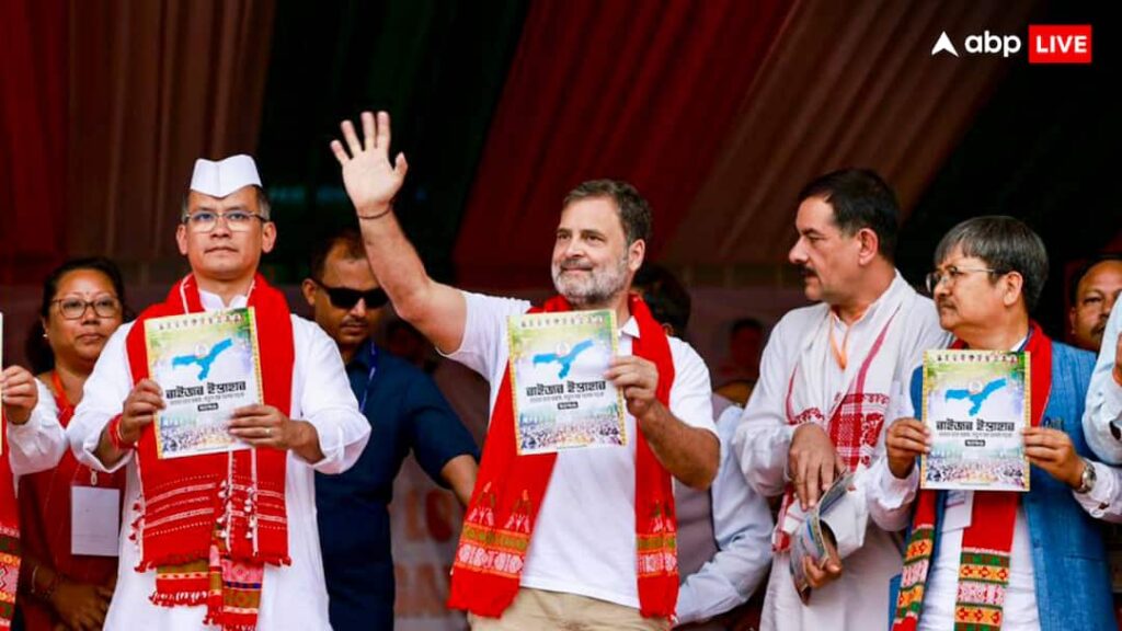 राहुल गांधी ने कांग्रेस पार्टी की ओर से पांच प्रमुख गारंटियों का ऐलान किया, जिसमें महिलाओं के लिए प्रत्यक्ष आर्थिक सहायता और स्वरोजगार के लिए 50 हजार रुपये, 100 दिनों के भीतर ज़ुबीन गर्ग से जुड़े मुद्दों पर न्याय, 10 लाख लोगों को भूमि पट्टा, वरिष्ठ नागरिकों के लिए 1,250 रुपये मासिक सहायता, और गंभीर बीमारियों के लिए 25 लाख रुपये तक का मुफ्त स्वास्थ्य बीमा शामिल हैं।