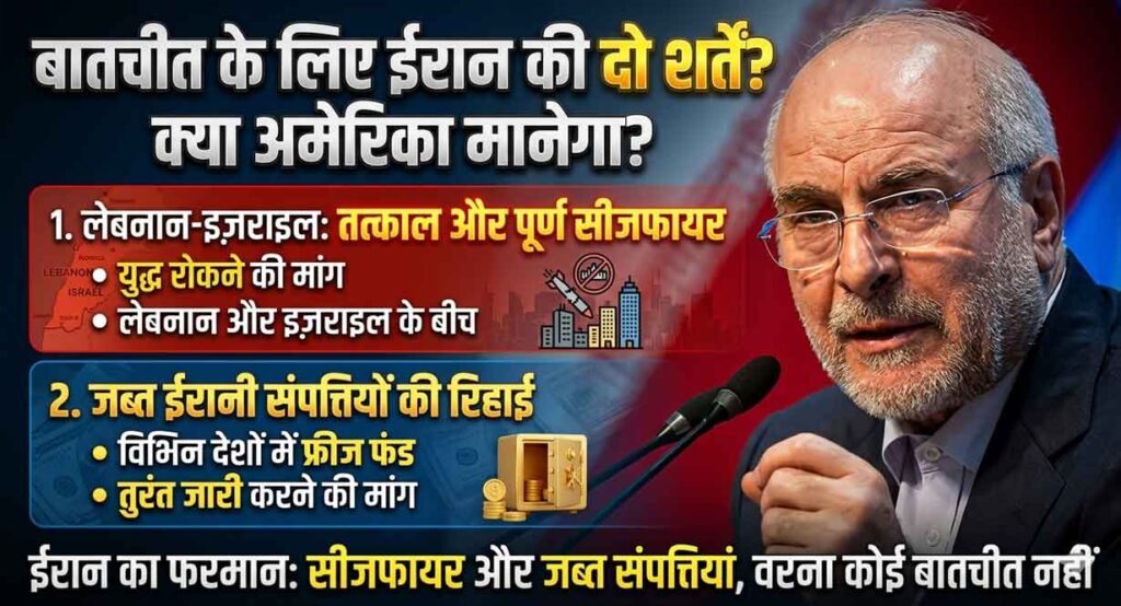 ईरान ने स्पष्ट कर दिया है कि वह बातचीत की मेज पर तभी आएगा जब अमेरिका उसकी दो प्रमुख शर्तों को स्वीकार कर लेगा। ये शर्तें इस प्रकार हैं: